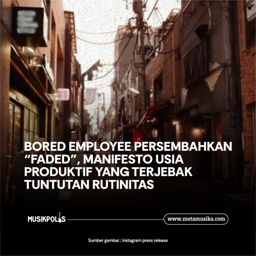 Konsisten Ajak Pendengar Selalu Peduli Akan Kesehatan Mental Bored Employe kembali memanjakan pendengarnya dengan single ke tiga. “Faded” merupakan tajuk dari tembang tersebut. Sebagaimana menjadi gerbang menuju EP yang sedang dipersiapkan. Berbanding terbalik dengan tembang – tembang sebelaumnya. “Faded” menghadirkan atmosfer yang lebih tenang namun diperkuat dengan emosional. Tembang ini ditulis dari cerminan personal para…